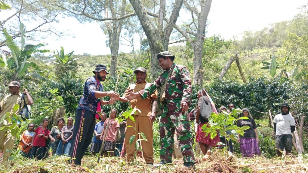 Jelang HUT TNI Ke-80, Koramil 1715-02/Kiwirok Kodim 1715/Yahukimo Bersama Masyarakat 12 Desa di Distrik Kiwirok Melaksanakan Penanaman Pohon Kopi