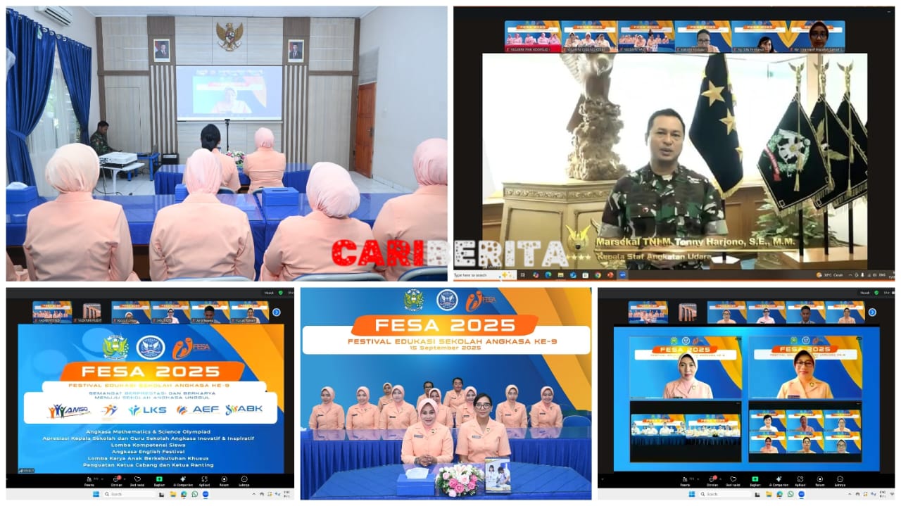 MAKASSAR CARIBERITA – Ketua Yasarini Pengurus Cabang Lanud Sultan Hasanuddin Ny. Betty Arifaini Nur Dwiyanto didampingi segenap pengurus Yasarini Lanud Sultan Hasanudin mengikuti pembukaan Festival Edukasi Sekolah Angkasa (FESA) Ke-9 Tahun 2025 secara online di Kantor PIA AG Lanud Sultan Hasanuddin, Makassar, Senin (15/9/2025).