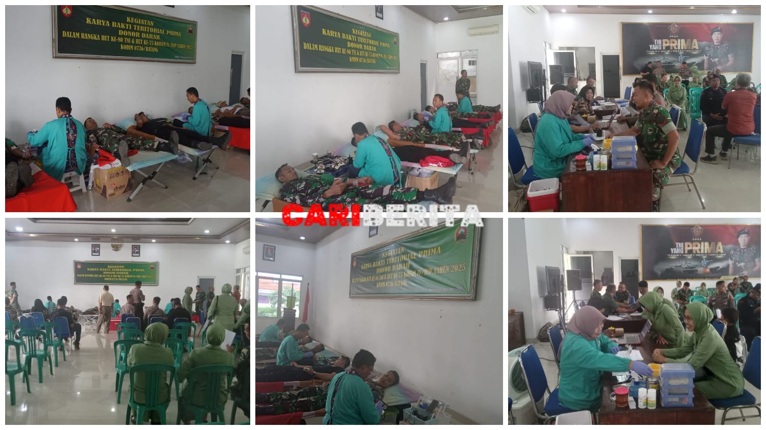 BATANG,CARIBERITA – Dalam rangka mengisi kegiatan peringatan Hari Ulang Tahun (HUT) Tentara Nasional Indonesia (TNI) ke-80 dan HUT Kodam IV/Diponegoro ke-75, Kodim 0736/Batang mengelar kegiatan Bakti Sosial Donor Darah bertempat di Aula Makodim jl. Jenderal Sudirman No. 41 Kelurahan Kasepuhan Batang. Kamis (18/09/2025).