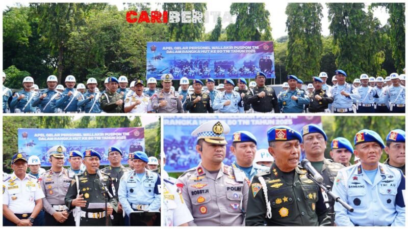 JAKARTA CARIBERITA – Pusat Polisi Militer Tentara Nasional Indonesia (Puspom TNI) menggelar Apel Gelar Personel Pengawalan Lalu Lintas dan Parkir (Wallakir) dalam rangka HUT Ke-80 TNI Tahun 2025. Apel ini dipimpin langsung oleh Danpuspom TNI Mayjen TNI Yusri Nuryanto di Pintu Sepatu Roda, Silang Monas, Jakarta Pusat, Senin (22/9/2025).