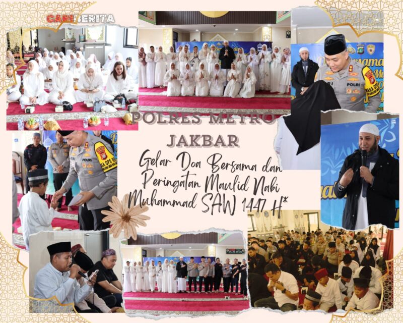 JAKARTA CARIBERITA – Usai melaksanakan ibadah shalat dzuhur berjamaah, Polres Metro Jakarta Barat menggelar kegiatan doa bersama dan peringatan Maulid Nabi Muhammad SAW 1447 H / 2025 M di Masjid Jami Al-Istiqomah, Selasa (23/9/2025).