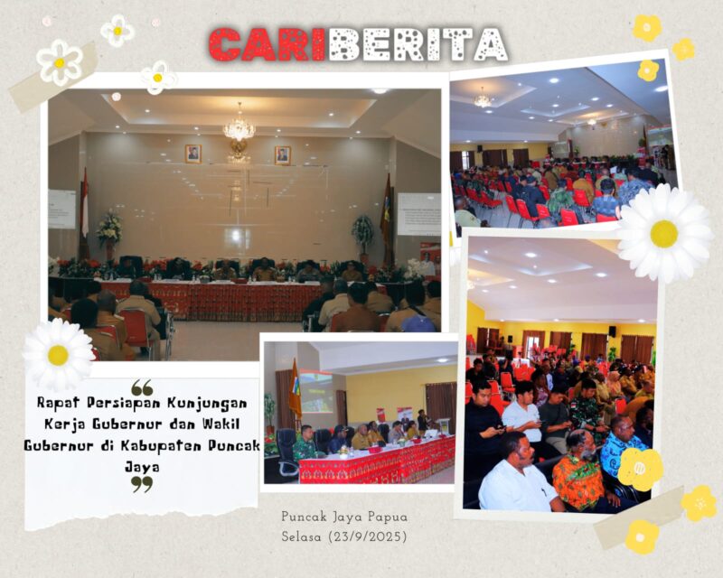 PUNCAK JAYA CARIBERITA – Dalam rangka persiapan kunjungan kerja Gubernur dan Wakil Gubernur Papua Tengah ke Kabupaten Puncak Jaya, Pemerintah Daerah menggelar rapat koordinasi yang dipimpin langsung oleh Bupati Puncak Jaya, Yuni Wanda, S.Sos., S.IP., M.M., Selasa (23/9/2025).