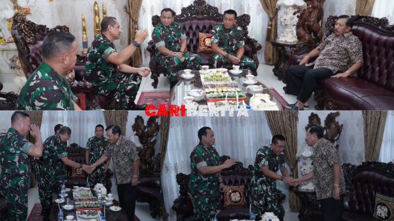 “Kedatangan kami menyampaikan salam hormat Panglima TNI, dan sebagai junior kami siap menerima petunjuk serta arahan dari Bapak,” ujarnya.