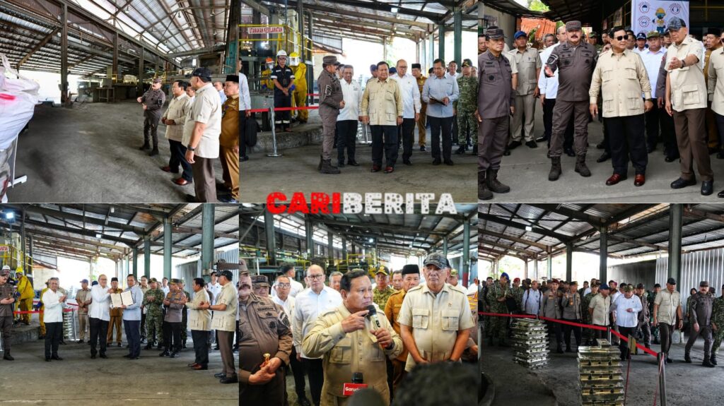 BABEL, CARIBERITA – Panglima TNI Jenderal TNI Agus Subiyanto mendampingi Presiden Republik Indonesia Prabowo Subianto dalam kunjungan kerja ke Kawasan Smelter PT Tinindo Internusa, Pangkal Pinang, Bangka Belitung, Senin (6/10/2025).