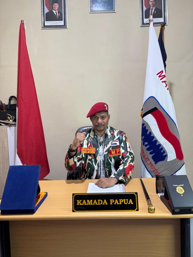 PAPUA, CARIBERITA – Ketua Markas Daerah Laskar Merah Putih Provinsi Papua, Jan Christian Arebo, mengucapkan selamat atas dilantiknya Komite Percepatan Reformasi Polri (KPRP) oleh Presiden Prabowo Subianto pada hari Sabtu, 7 November di Jakarta.