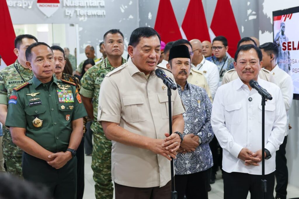 JAKARTA CARIBERITA – Panglima TNI Jenderal TNI Agus Subiyanto bersama Wakil Panglima TNI Jenderal TNI Tandyo Budi R mendampingi Menteri Pertahanan RI Sjafrie Sjamsoeddin dalam Peresmian Layanan Immunotherapy Nusantara dan Grand Opening Digital Subtraction Angiography (DSA) di Rumah Sakit Pusat Pertahanan Negara (RSPPN) Panglima Besar Soedirman, Jl. RC. Veteran Raya, Bintaro, Pesanggrahan, Jakarta Selatan, Senin (10/11/2025).