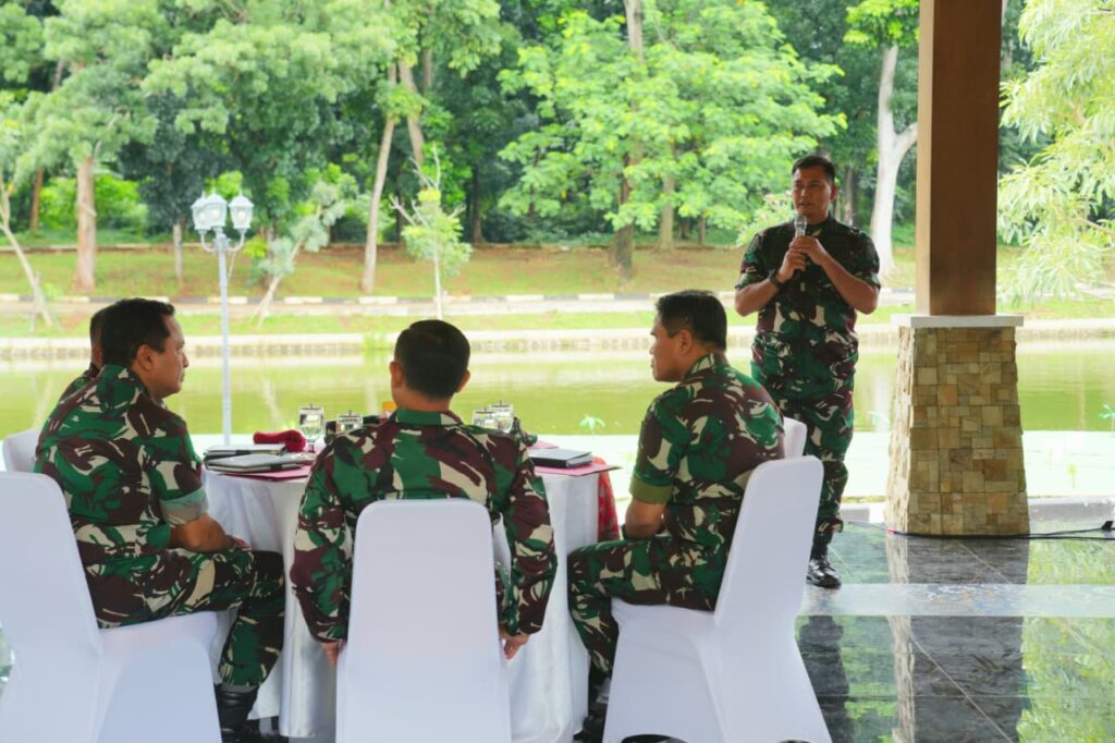 JAKARTA CARIBERITA – Panglima TNI Jenderal TNI Agus Subiyanto didampingi Kasal Laksamana TNI Muhammad Ali, Kasau Marsekal TNI M. Tonny Harjono, serta Wakasad Letjen TNI Muhammad Saleh Mustafa meninjau pelaksanaan Gladi Model Latihan TNI 2025 yang digelar di Danau Tirta Asri, Mabes TNI, Cilangkap, Jakarta Timur, Rabu (12/11/2025).