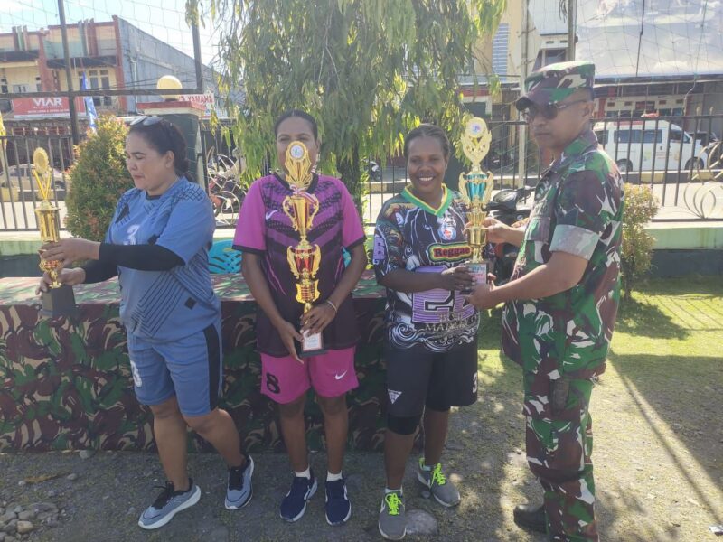 Koramil Timika Gelar Komsos Kreatif Bersama Warga Lewat Lomba Bola Voli