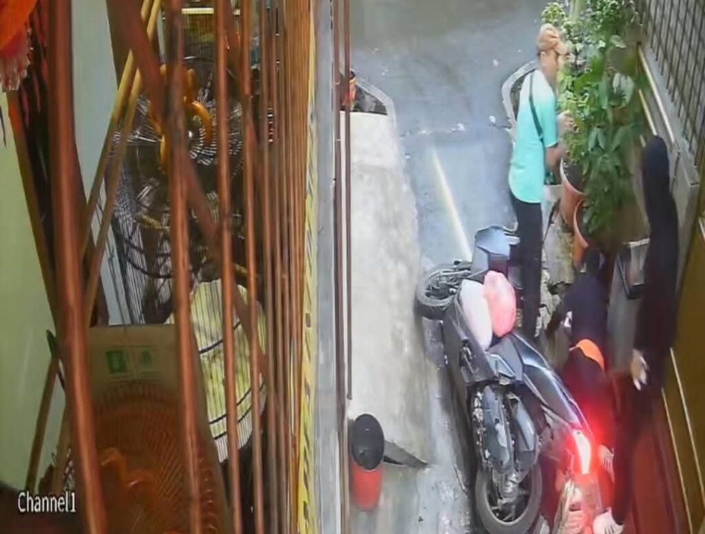 Suami korban yang berdiri pun tak dapat melakukan pembelaan sehingga akhirnya tas dan sebuah ponsel pun berhasil diambil pelaku.
