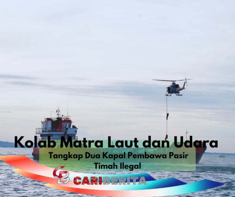 Kolab Matra Udara dan Laut Tangkap Dua Kapal Pembawa Pasir Timah Ilegal