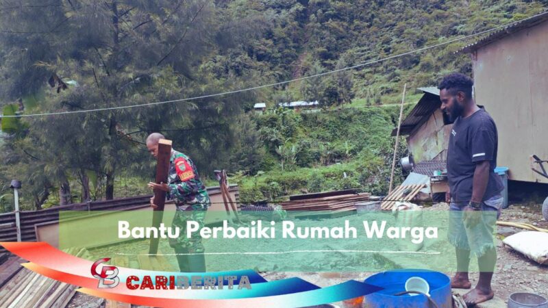 TIMIKA, CARIBERITA – Dalam rangka mewujudkan kemanunggalan TNI – Rakyat, Babinsa Koramil 1710-04/Tembagapura Pelda Indra R dan Serka Ikbertus Sumel melalui giar Binternya hari ini, membantu memperbaiki rumah di salah satu warga binaan an. Bapak Anis Magai di Kp. Banti 2, Distrik Tembagapura, Kab. Mimika, Selasa (25/11/2025).