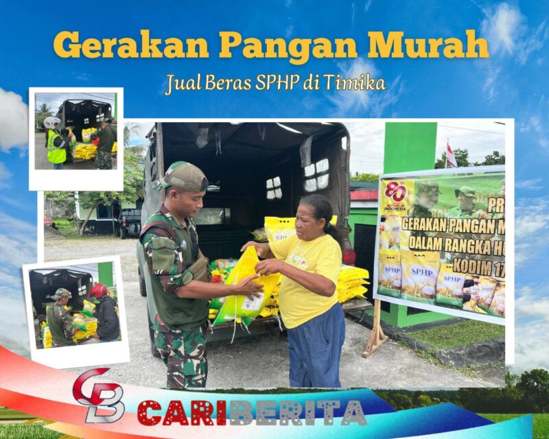 TIMIKA, CARIBERITA – Dalam rangka mendukung program pemerintah untuk menstabilkan harga beras, Kodim 1710/Mimika bekerja sama dengan Bulog Kancab Mimika terus menggencarkan Gerakan Pangan Murah (GPM) melalui penjualan beras SPHP (Stabilisasi Pasokan dan Harga Pangan) di wilayah Kabupaten Mimika, Kamis (27/11/2025).