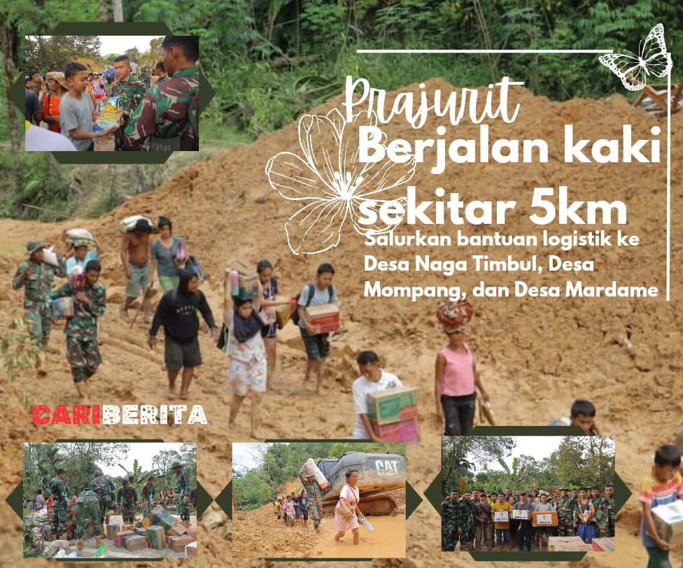 Pada Selasa (2/12/2025), prajurit berjalan kaki sekitar lima kilometer untuk menyalurkan bantuan logistik ke Desa Naga Timbul, Desa Mompang, dan Desa Mardame setelah akses jalan menuju wilayah tersebut terputus total.