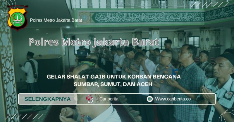 JAKARTA CARIBERITA – Polres Metro Jakarta Barat melaksanakan shalat gaib untuk para korban bencana alam yang melanda wilayah Sumatera Barat, Sumatera Utara, dan Aceh, Senin (8/12/2025).