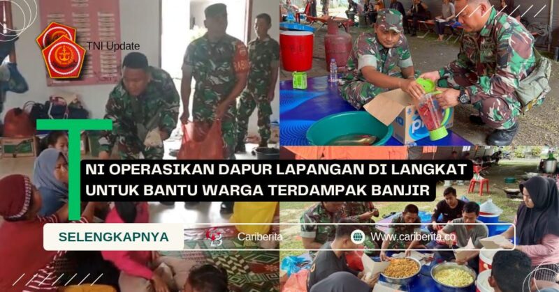 LANGKAT. CARIBERITA – TNI operasikan dapur lapangan untuk bantu warga terdampak banjir di Kodim 0203/Langkat sebagai bentuk kepedulian dan respons cepat dalam membantu masyarakat terdampak banjir di wilayah Kabupaten Langkat. Pada Jumat (12/12/2025). Melalui Kodim 0203/Langkat, TNI mengoperasikan dapur lapangan yang berlokasi di Pasar 4,5 Kelurahan Kebun Lada, Kecamatan Hinai.