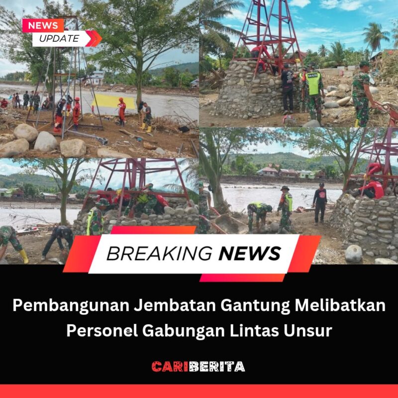 ACEH, CARIBERITA – TNI bersama Kementerian Pertahanan RI terus mendukung percepatan pemulihan infrastruktur pascabencana banjir bandang dan tanah longsor di Provinsi Aceh melalui pembangunan jembatan gantung di sejumlah wilayah. Pembangunan ini bertujuan membuka kembali akses transportasi dan memulihkan aktivitas masyarakat yang sempat terputus akibat bencana.