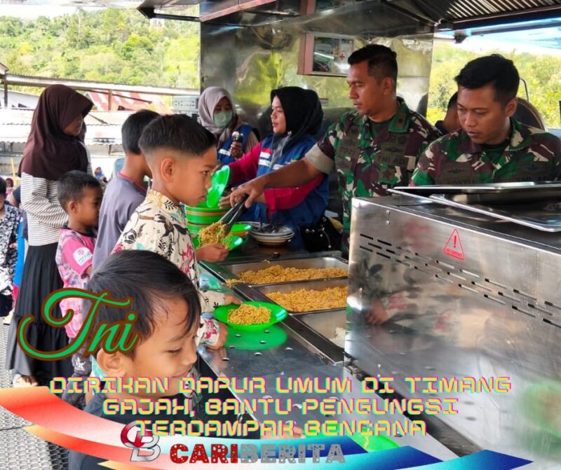 ACEH, CARIBERITA – TNI melalui Bekangdam Iskandar Muda mendirikan dapur umum di Kecamatan Timang Gajah, Kabupaten Bener Meriah, guna membantu memenuhi kebutuhan konsumsi masyarakat terdampak bencana di wilayah Pantan Kemuning dan Desa Tunyang, Senin (29/12/2025).