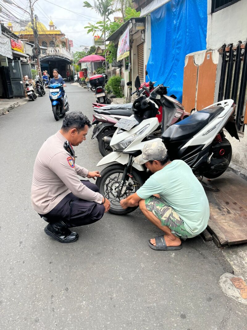 Dalam suasana yang akrab dan humanis, Bhabinkamtibmas memberikan edukasi pentingnya penggunaan kunci ganda dan gembok tambahan pada kendaraan bermotor.