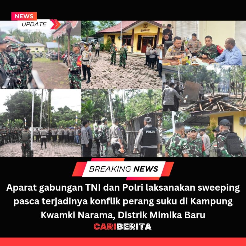 TIMIKA CARIBERITA – Aparat gabungan TNI dan Polri melaksanakan sweeping pasca terjadinya konflik perang suku di Kampung Kwamki Narama, Distrik Mimika Baru, Kabupaten Mimika, Senin (5/1/2026).