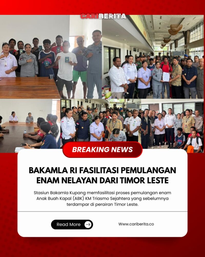 ATAMBUA, CARIBERITA — Bakamla RI melalui Stasiun Bakamla Kupang memfasilitasi proses pemulangan enam Anak Buah Kapal (ABK) KM Triasmo Sejahtera yang sebelumnya terdampar di perairan Timor Leste. Proses serah terima dilaksanakan di Pos Lintas Batas Negara (PLBN) Motaain, Atambua, Nusa Tenggara Timur, Rabu (7/1/2026).