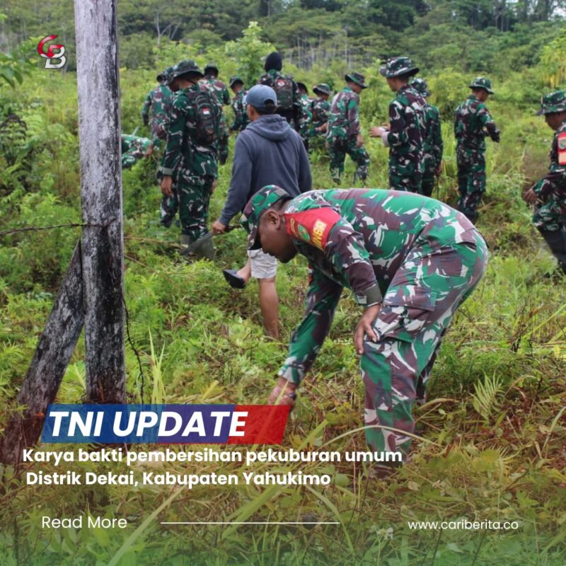YAHUKIMO, CARIBERITA – Karya bakti pembersihan pekuburan atau Pemakaman umum Distrik Dekai, Kabupaten Yahukimo yang digelar pada Selasa, 3 Februari 2026 di Jalan Jenderal Sudirman Km 6, Distrik Dekai, Kabupaten Yahukimo, Papua Pegunungan, melibatkan gabungan anggota Kodim 1715/Yahukimo, Yonif TP 816/Doruka, Polres Yahukimo dan masyarakat Jama’ah Masjid At-Taqwa Dekai.