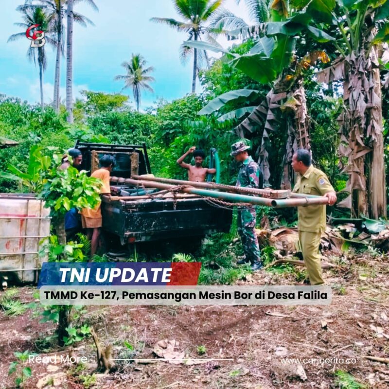 MOROTAI, MALUKU UTARA, CARIBERITA – Personel TMMD Ke-127 Kodim 1514/Morotai melaksanakan pemasangan mesin bor air dalam rangka pengerjaan sasaran sumur bor di Desa Falila, Kecamatan Morotai Selatan, Senin (23/02/2026).