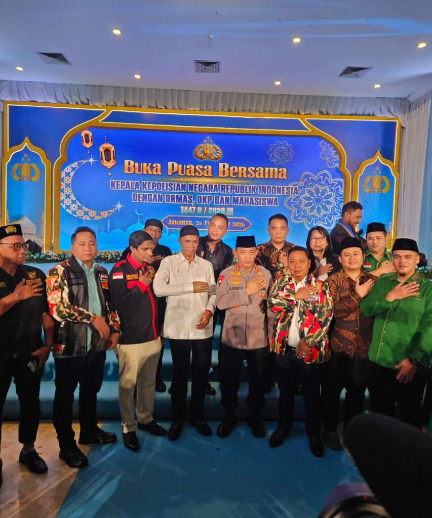 JAKARTA, CARIBERITA– Ketua Umum Laskar Merah Putih (LMP), H.M. Arsyad Cannu, menghadiri acara buka puasa bersama yang digelar jajaran Polri bersama berbagai organisasi kemasyarakatan (Ormas) dan Organisasi Kemasyarakatan Pemuda (OKP), Kamis (26/2/2026).