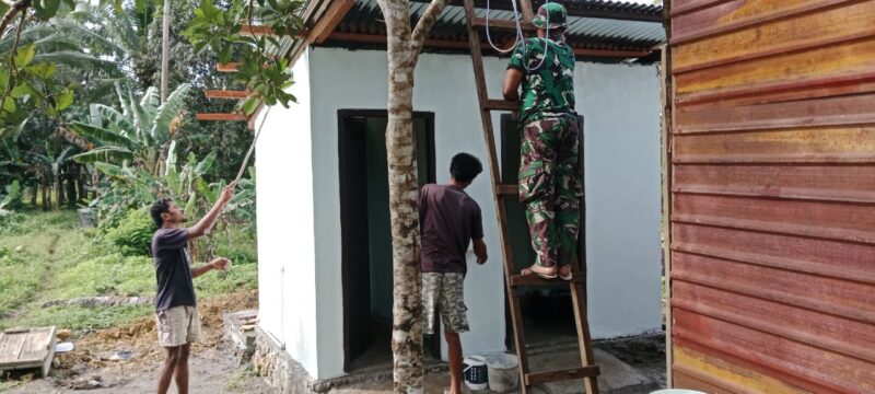 Personel TMMD Ke-127 Kodim 1514/Morotai Laksanakan Pengecatan MCK di Desa Dehegila