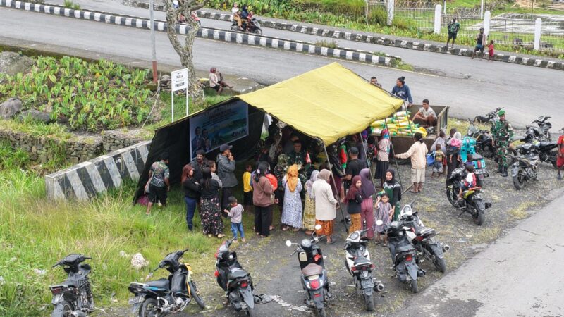 PUNCAK JAYA, CARIBERITA – Komando Distrik Militer (Kodim) 1714/Puncak Jaya bekerja sama dengan pihak Bulog menggelar sinergi nyata dalam mendukung program swasembada pangan nasional melalui kegiatan distribusi beras dalam rangka program pangan murah. Kegiatan yang berlokasi di perempatan jalan Distrik Purlame, sekitar kawasan Markas Kodim 1714/Puncak Jaya, Kabupaten Puncak Jaya, Papua, Rabu (1/4/2026), diimplementasikan sebagai upaya strategis untuk menjamin ketersediaan pangan yang terjangkau serta memperkuat kemandirian pangan di wilayah yang memiliki tantangan geografis dan kondisi logistik yang khas.