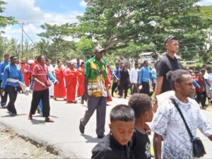 TIMIKA, CARIBERITA – Babinsa Koramil 1710-07/Mapurujaya, Sertu Yulius Nampe, melaksanakan pengamanan kegiatan ibadah dan prosesi jalan salib yang berlangsung di Distrik Mimika Timur, Jumat (3/4/2026).