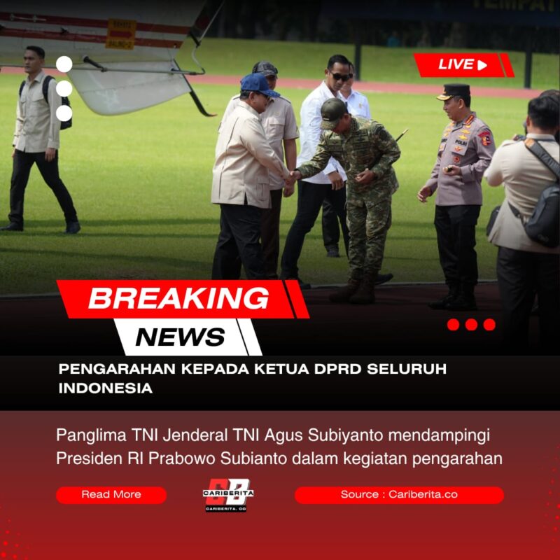 MAGELANG, CARIBERITA – Panglima TNI Jenderal TNI Agus Subiyanto mendampingi Presiden RI Prabowo Subianto dalam kegiatan pengarahan kepada para Ketua Dewan Perwakilan Rakyat Daerah (DPRD) seluruh Indonesia pada Kursus Pemantapan Pimpinan Daerah (KPPD) yang mengusung tema “Memperkuat peran pimpinan DPRD provinsi/kabupaten/kota guna mendukung Asta Cita menyongsong Indonesia Emas 2045”, bertempat di Akademi Militer Magelang, Jawa Tengah, Sabtu (18/4/2026).