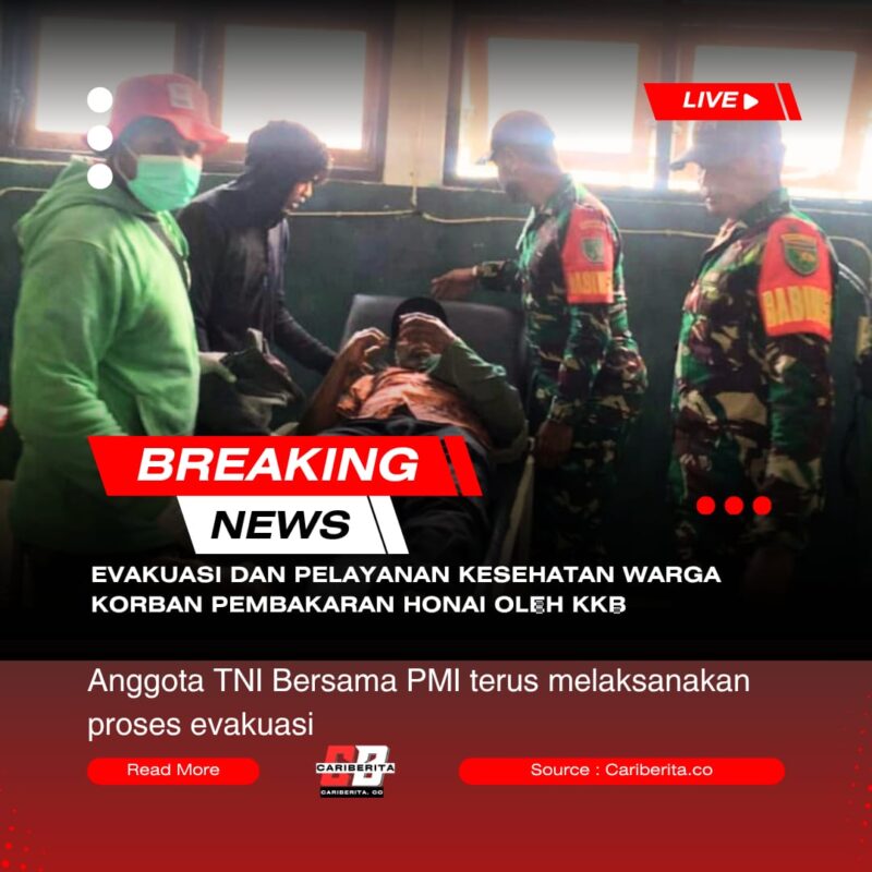MULIA, CARIBERITA – Palang Merah Indonesia (PMI) bekerja sama dengan Rumah Sakit Umum Daerah (RSUD) dan TNI bahu-membahu memberikan pelayanan kesehatan serta melakukan evakuasi terhadap korban pembakaran honai yang dilakukan oleh kelompok bersenjata pimpinan Lekagak Telenggen, berlokasi di Jalan Trans Papua, Distrik Puraleme, Kabupaten Puncak Jaya Sabtu (18/4/2026).