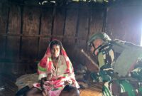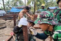 Pembangunan Rumah Terus Digenjot, oleh personel Satgas bersama warga setempat