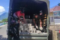 Satgas TMMD Ke-124 Kodim 1501/Ternate dan Masyarakat Gotong Royong Angkut Material Pembangunan