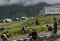 Satgas Yonif 715/Mtl Ajak Warga Gotong-Royong Karya Bhakti di Puncak Jaya