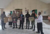 Babinsa Koramil Jila Bersama Bhabinkamtibmas Bagikan Sembako Kepada Jemaat Gereja
