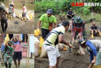 Satgas TMMD Kodim 1505/Tidore Bersama Warga Gotong Royong Ambil Material Pasir Untuk Pembangunan Lapangan Bola Voli