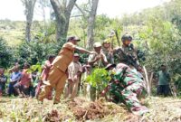 Koramil 1715-02/Kiwirok Kodim 1715/Yahukimo Bersama Masyarakat 12 Desa di Distrik Kiwirok Melaksanakan Penanaman Pohon Kopi