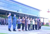 Kepala Staf Angkatan Laut (Kasal) Laksamana TNI Dr. Muhammad Ali, S.E., M.M., M.Tr. Opsla., didampingi Ketua Umum Jalasenastri Ny. Fera Muhammad Ali beserta rombongan, bertempat di Apron Baseops Lanud Sultan Hasanuddin, Makassar