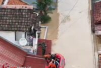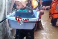 Aksi penyelamatan evakuasi bayi dilokasi banjir RW.07 Kelurahan Bidara Cina