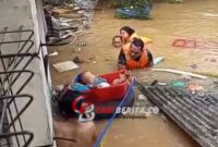 Aksi Heroik Personel Gabungan Evakuasi Warga Lanjut Usia Yang Terjebak Banjir
