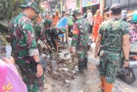 Koramil Kramat Jati Adakan Kerja Bhakti Bantu Warga Binaan Pasca Musibah Banjir