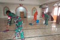 Merawat Kebersihan Masjid Al-Ikhlas Oleh Koramil 03/Pasar Rebo Giat Karya Bakti
