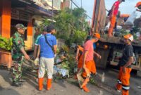Babinsa Sertu Yudi, Serda Muhammad bersama warga, PPSU dan perangkat Kelurahan bersihkan Puing, Senin (13/01/25).