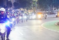 Patroli Skala Besar Personel gabungan dari TNI AD, TNI A L, dan TNI AU