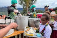 Satgas Yonif 509 Kostrad Bagikan Makanan Bergizi untuk Anak Sekolah di Intan Jaya